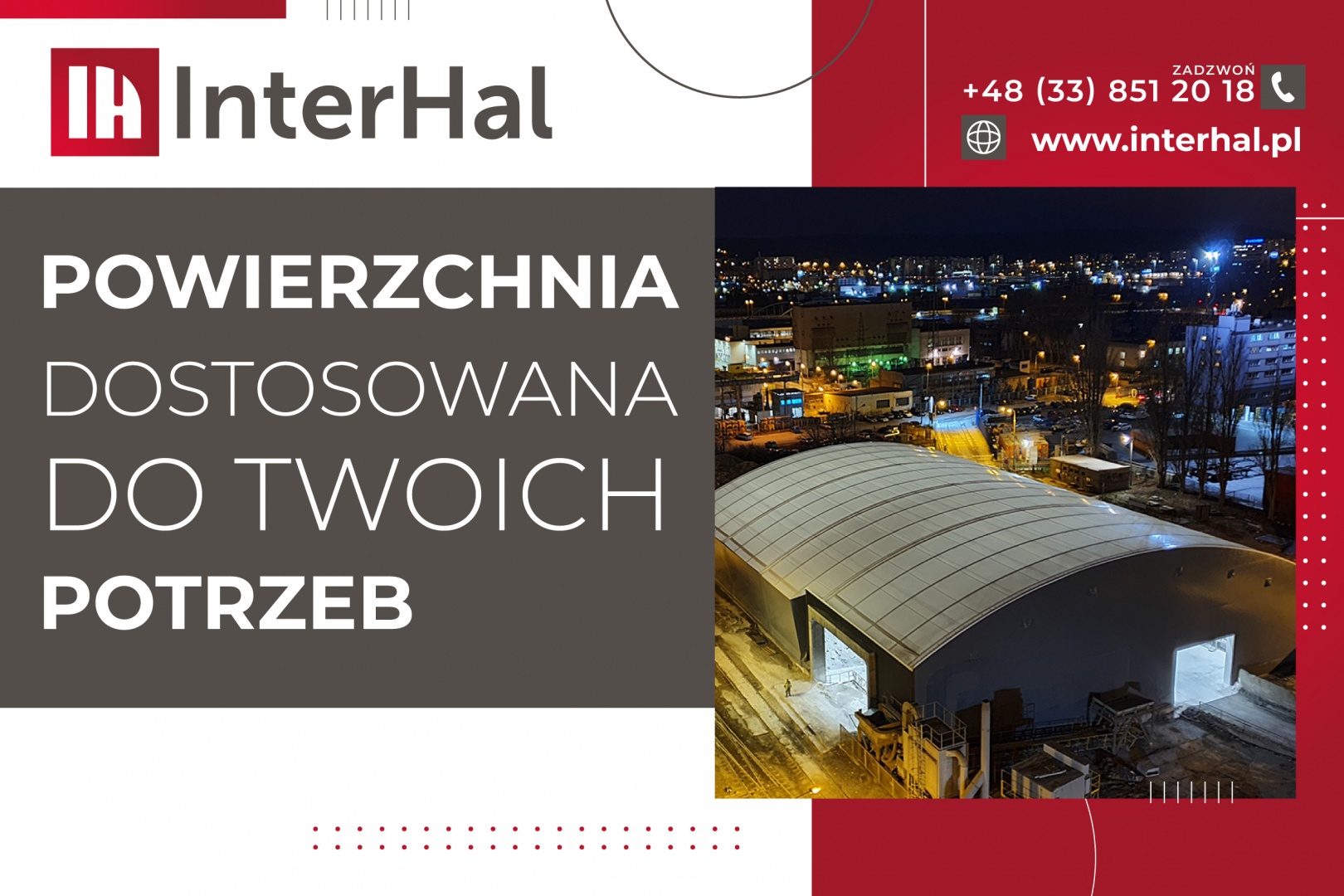 Interhal to przedsiębiorstwo o wieloletnim doświadczeniu w branży, oferujące unikalne podejście do wznoszenia konstrukcji stalowych. Co istotne, obiekty te spełniają wymogi norm PN-EN dla stałych obiektów budowlanych i mogą z powodzeniem pełnić także funkcje hal sportowych, wystawczych czy obiektów biurowych. Wszystkie projekty realizowane przez Interhal opatrzone są aż 10-letnią gwarancją – to zdecydowanie jeden z czynników wyróżniających firmę na rynku.