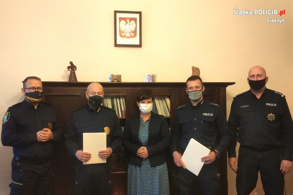 Nagrodę przyznano dzielnicowemu mł. asp. Kamilowi Przewieźlikowi, który w ocenie przełożonych najlepiej wywiązywał się z zadań, niezmiennie utrzymuje bardzo dobry kontakt z mieszkańcami rejonu służbowego, gdzie co dzień pełni służbę, posiada szeroką wiedzę, którą wykorzystuje na co dzień pomagając mieszkańcom dzielnicy. W 2020 roku osiągnął najlepsze wyniki w służbie, które wymiernie przedkładają się na stan bezpieczeństwa w pełnionym przez niego rejonie służbowym. Najlepszemu dzielnicowemu nagrodę pieniężną oraz dyplom wręczyła Burmistrz Miasta Cieszyna Gabriela Staszkiewicz. W trakcie uroczystości nagordzony i wyróżniony za służbę został również funkcjonariusz Straży Miejskiej w Cieszynie Jacek Fober. Do gratulacji wyróznionym funkcjonariuszom przyłączyli się Komendant Powiatowy Policji w Cieszynie insp. Jacek Stelmach oraz Komendant Straży Miejskiej w Cieszynie Jacek Bąk