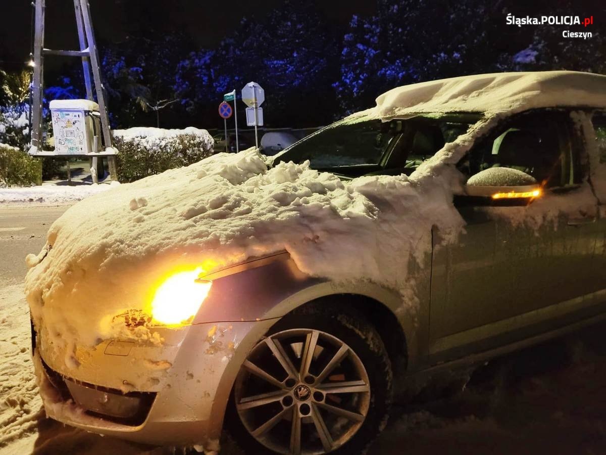 Policjanci wydziału ruchu drogowego cieszyńskiej drogówki podczas patrolu na ulicy Bielskiej w Cieszynie zauważyli samochód, który „transportował” sporą ilość śniegu. Pojazd jechał jak jedna wielka śnieżna kula. To za sprawą kierowcy, który nie zadbał, by auto właściwie przygotować do jazdy. W pośpiechu na basen 33-latek zdążył odśnieżyć szybę zapominając przy tym o pozostałej części pojazdu, w tym o światłach, które są jednym z najważniejszych elementów bezpieczeństwa na drodze. Nie trzeba też dodawać, że zalegający na samochodzie śnieg mógł w każdej chwili zsunąć się i spaść na jezdnię przed inny pojazd jadący za nieodpowiedzialnym kierowcą stwarzając niepotrzebne zagrożenie. Konsekwencją tego niedbalstwa mógł być poślizg, wypadek, a więc niepotrzebne narażenie czyjegoś zdrowia i życia.Takie rzeczy łatwo przewidzieć.